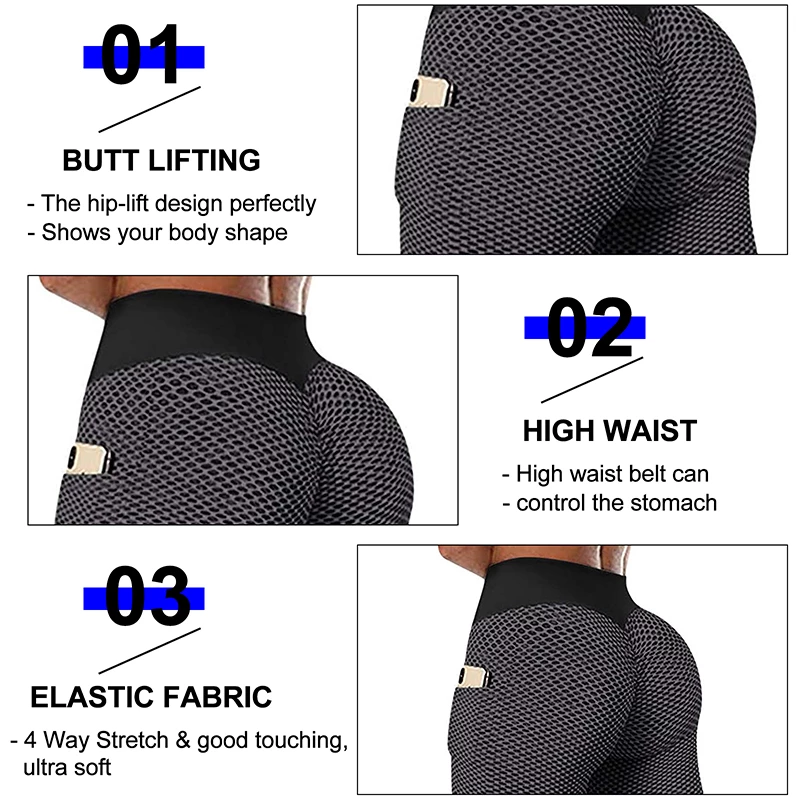 1. Hip lift; Abdominal control and high waist; Stretchy and quick-drying thick fabric;
