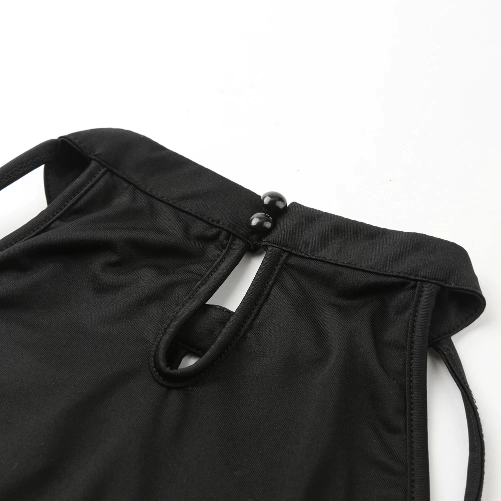 Hollow out design at front and sleeveless style.