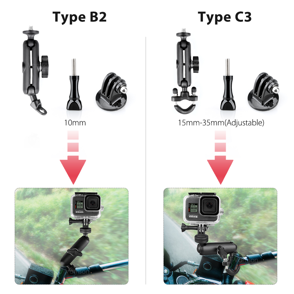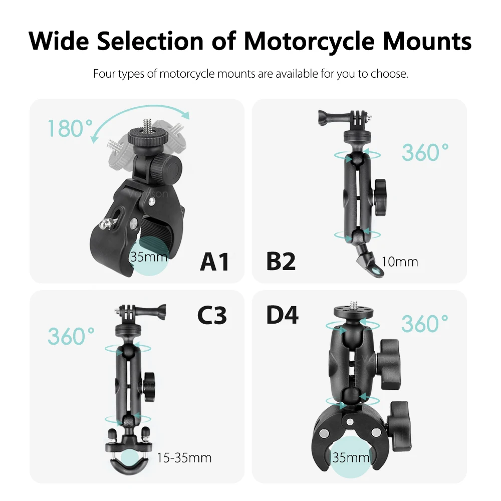 1. There are four motorcycle brackets for you to choose from, which can be directly connected to the action camera through the 1/4 screw hole.
