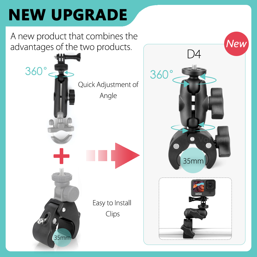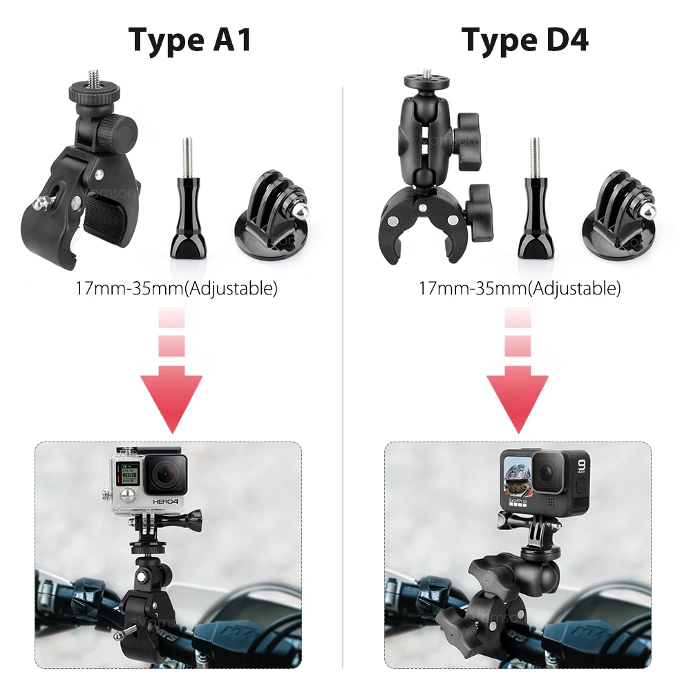 D4: For motorcycles, bicycles or any handlebars with a diameter of 17-35mm, it can be adjusted and tightened freely.
