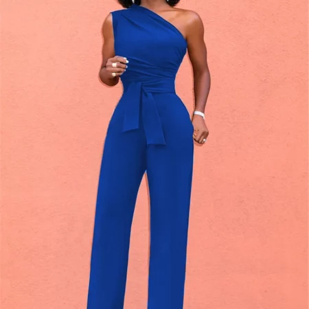 Sexy One Shoulder Rompers Womens Jumpsuit Summer Sleeveless Belt Wide Leg Elegant Lady New Size Bodycon Jumpsuits White Black