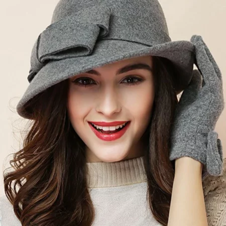 Women Party Formal Headwear Lady Winter Fashion Asymmetric Bowknot 100% Wool Felt Hats